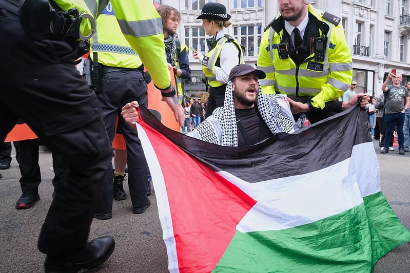 Since October 7, British authorities have increasingly weaponized sections of the country’s terrorism laws. In addition to increased use of section 12(1A) of the Terrorism Act 2000, there has also been an uptick in arrests and charges against individuals for allegedly violating section 13 of the same law, and section 1 of the Terrorism Act 2006.